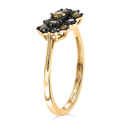 D'Joy Yellow Diamond, Multi Diamond Cluster Ring in 18K Vermeil Yellow Gold Plated Sterling Silver