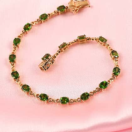 - The stations of the bracelet are embellished with Russian Diopside for a more tantalizing glow