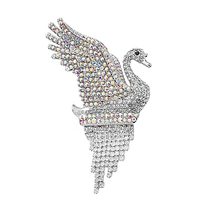 Add a touch of elegance to your wardrobe with this stunning black Austrian crystal swan brooch or pendant in silver tone. The intricate design features sparkling black Austrian crystals accented by simulated white AB crystals for a truly mesmerising look. The versatile piece can be worn as a brooch or pendant and is finished in a silver tone for a classic touch. Accompanied by a bar pin on the back, this beautiful brooch is sure to become a treasured addition to your jewellery collection, perfect for special occasions or everyday wear.