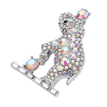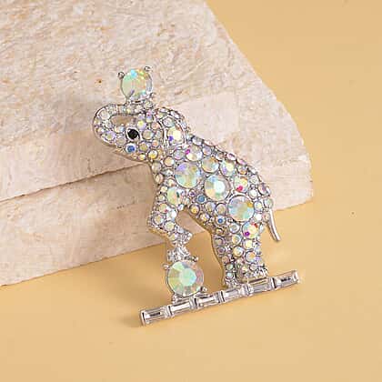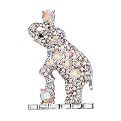 Add a dash of delightful glimmer with this adorable simulated diamond and simulated Aurora Borealis crystal brooch that can also be worn as a pendant! The winning design features an adorable elephant motif studded with simulated diamonds and simulated Aurora Borealis crystals. The playful spirit of the animal kingdom is rightfully captured by expert artisans, resulting in this unique design. Simulated Aurora Borealis crystals shimmer with iridescent hues adding intense attraction. Studded simulated diamonds offer unmatched fire and brilliance, making it a coveted piece. With its dual functionality, this collector's item will be your most cherished piece for a long time!