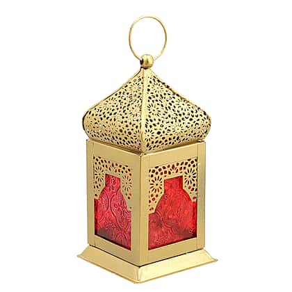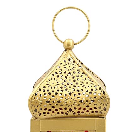 DOORBUSTER - Handmade Moroccan Style LED Lantern with Golden Finish (3xAAA Battery Required) - Red