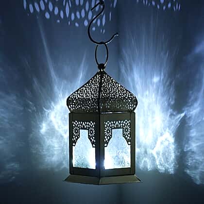 DOORBUSTER - Handmade Moroccan Style LED Lantern with Golden Finish (3xAAA Battery Required) - White