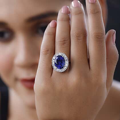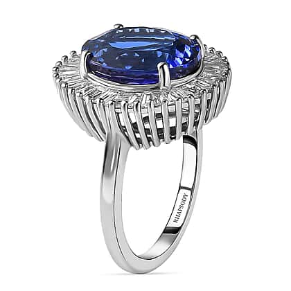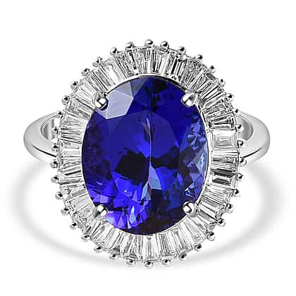 RHAPSODY 950 Platinum AAAA Premium Tanzanite and Diamond (VS/E-F) Ring 10.00 Ct, Platinum Wt 7.85 Gms