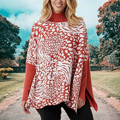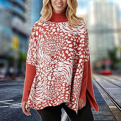 Nova of London Zebra Roll Neck Poncho Jumper (One Size, 8-20) - Rust