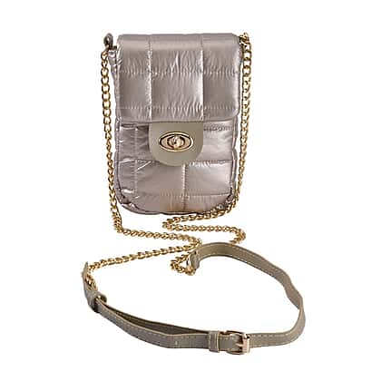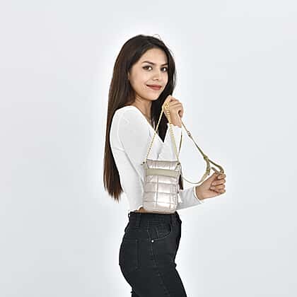 Doorbuster- Quilted Pattern Puffy Crossbody Bag with RFID Protection (Size 20x14x3 Cm) - Champagne