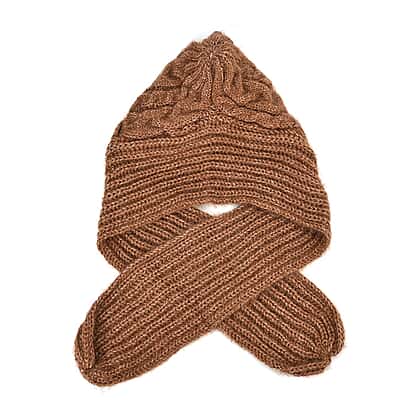 Double Layered 2 in 1 Knitted Hooded Scarf - Brown