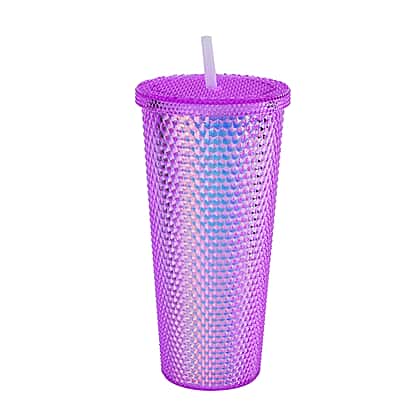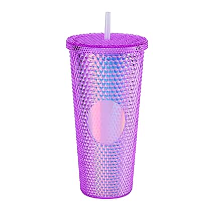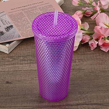 Double Wall Creative Water Tumbler with Silica Gel Straws 600ml - Purple