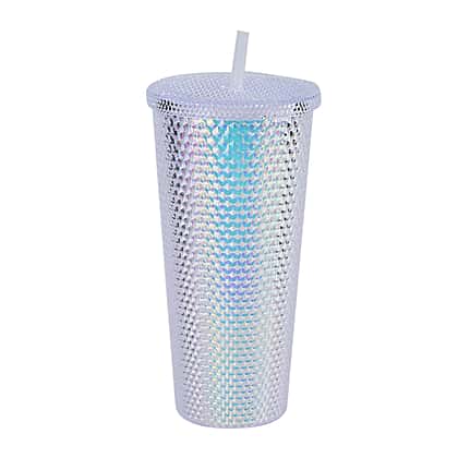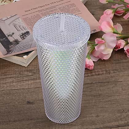 Double Wall Creative Water Tumbler with Silica Gel Straws 600ml - White