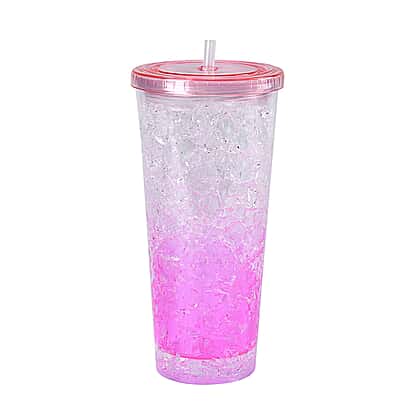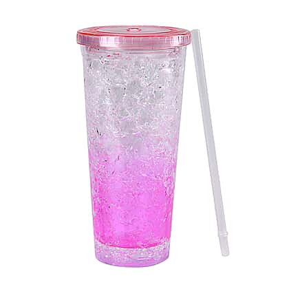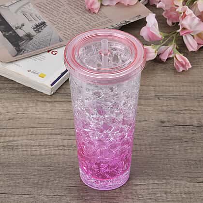 Double Wall Ice Crack Tumbler with Lid and Straw 600ml - Pink