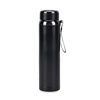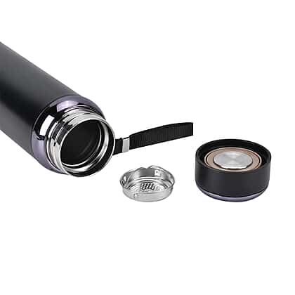 Double Wall Thermos Cup with Stainless Steel Filter and Lanyard 1000ml - Black