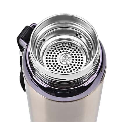 Double Wall Thermos Cup with Stainless Steel Filter and Lanyard 1000ml - Gold