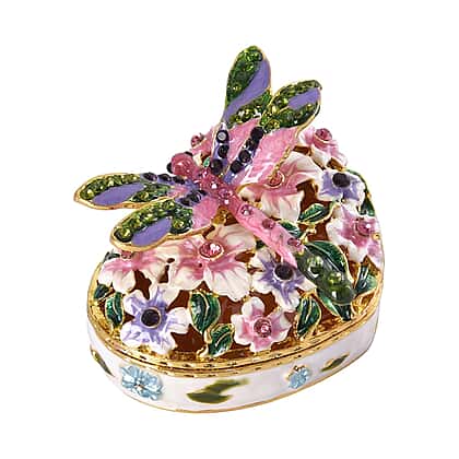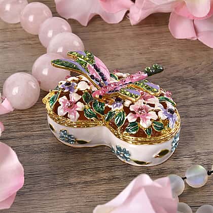 Dragonfly Crystal Studded Trinket Jewellery Box - Multi