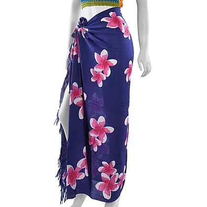 Balinese Navy Blue Colour Floral Pattern Hand Painted Sarong