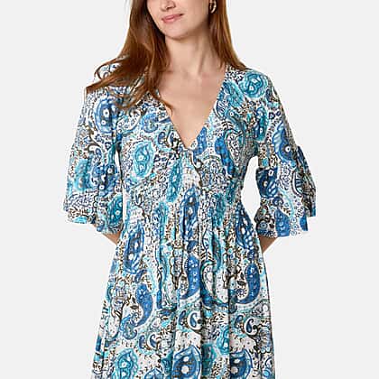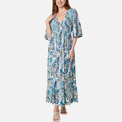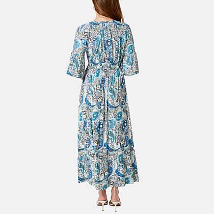 Chilli & Charm Paisley Print Shirred Empire Bust Dress (Size L, 16 to 18) - Blue
