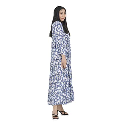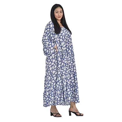 Close Out Deal - 100% Floral Pattern Long Dress -Navy