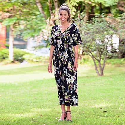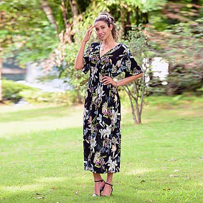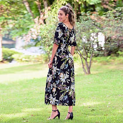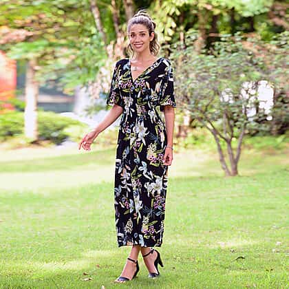 JOVIE Floral Pattern Smocked Dress (Size 125x40 Cm) - Black & Multi