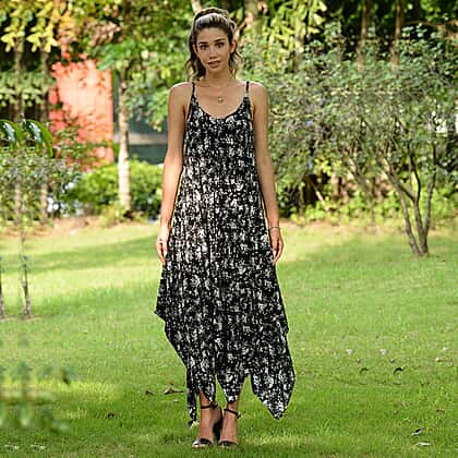 LA MAREY 100% Viscose Floral Pattern Slip Dress - Black and White