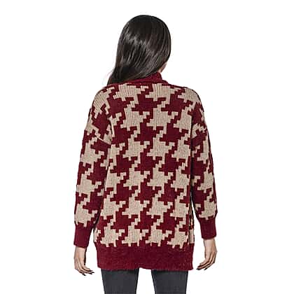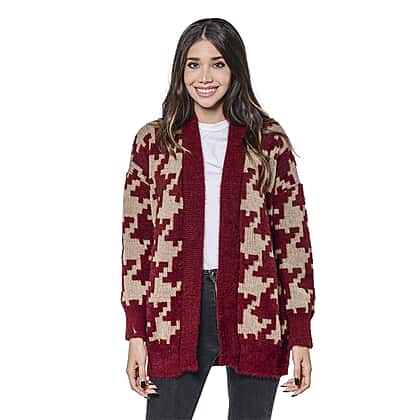 LA MAREY Houndstooth Pattern Red and Beige Cardigan (Size Upto 18)