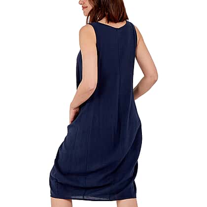 Nova of London Round Neck Two Pocket Cotton and 50 Linen Dress - Navy