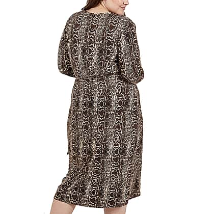 NOVA of London Snkae Print Wrap Midi Dress with Dip Back in Brown (Size 18)