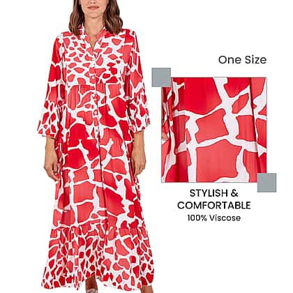 Nova of London Women Giraffe Pattern Maxi Smock Dress (One Size) - Red