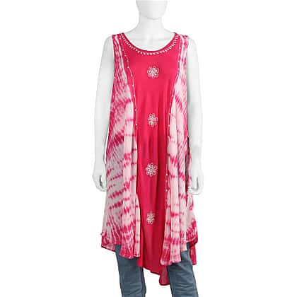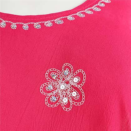 • White embroidery bordering the neck and scattered on the solid fuchsia middle panel adds a dash of elegance