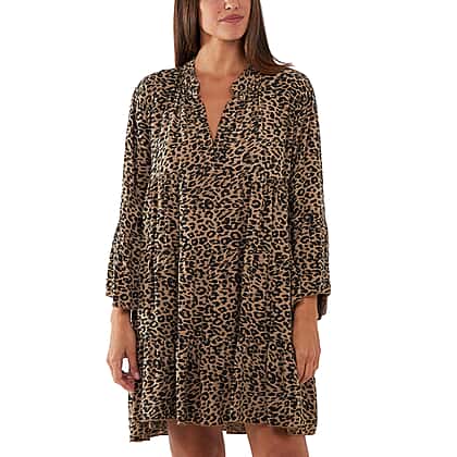 TAMSY Leopard Pattern Smock Women's Dress - Khaki and Black