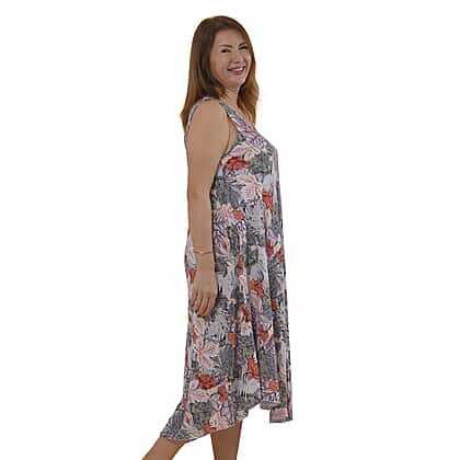 Dress with a viscose print by TAMSY. adorned with a block pattern in multiple colours. Arms can move freely thanks to the fashionable sleeveless design. suitable for the spring or summer. made from a lightweight, comfortable, and breathable fabric that is 100 percent viscose. Also renowned for its soft feel and lustrous finish. Wearable both alone and paired with jackets, coats, and leggings, etc.