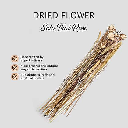 Bring the charm of nature indoors with this beautifully arranged Natural Dried Flower Arrangement with Lagurus Grass. Presented in a paper tray, this arrangement features Sola Thai Roses, handcrafted by skilled artisans from natural wood. It’s the perfect eco-friendly alternative to both fresh and artificial flowers. These flowers last a lifetime, adding timeless beauty and a gentle fragrance to your home. Sustainably sourced and thoughtfully designed, they offer an organic way to enhance any space throughout the year. Whether as a treat for yourself or a thoughtful gift, this arrangement brings joy and natural elegance into any room.