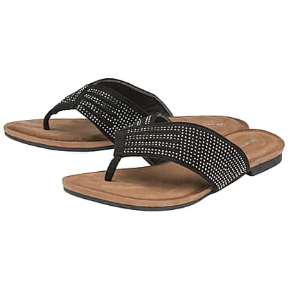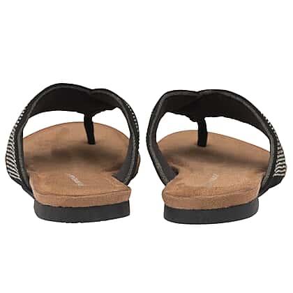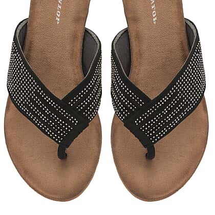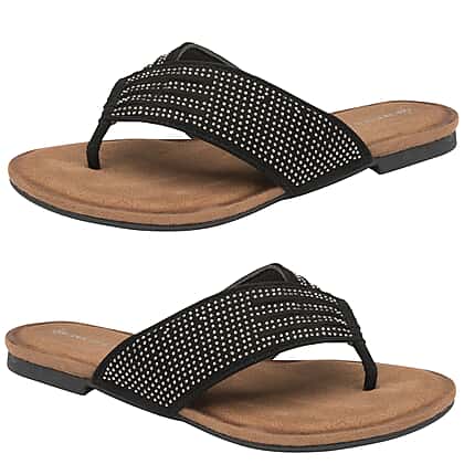 Comfortable and stylish, this pair of Dunlop Clarice studded V sandals are designed to complement your casual outfits. Wear the open-toe sandals with long dresses, jeans, or Boho skirts to sashay in style. Made in a combination of black and brown, the Size 5 sandals for women will match outfits in any colour. The soft, anti-skid sole ensures you stay safe and comfy.