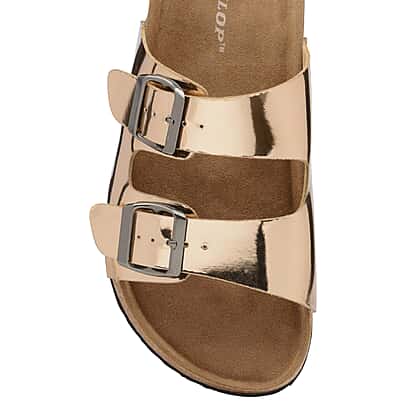 - These two-strap sandals are featured in a dazzling Rose Gold colour