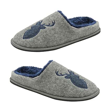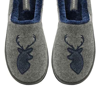 Dunlop Faux Fur Lining Memory Foam Stag Slip On Slippers (Size 7) - Grey
