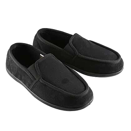 Dunlop Twin Gusset Moccasin Slippers - Black