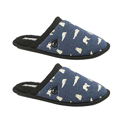 Dunlop Mens Polar Bear Mule Slippers Small (size 7-8) - Navy Blue