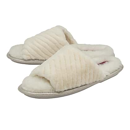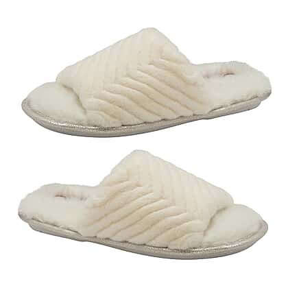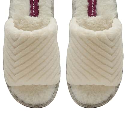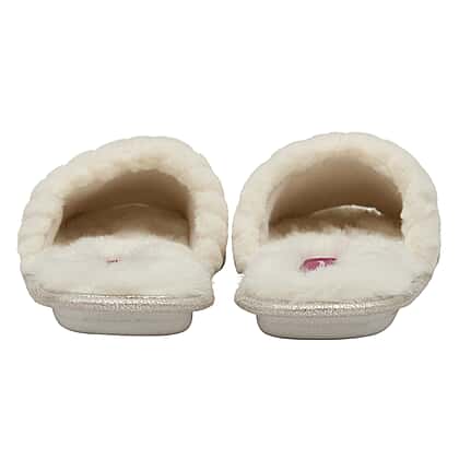 Dunlop Phoebe Ladies Memory Foam Faux Fur Lined Slip On Mule Slippers (Size 3) - Cream