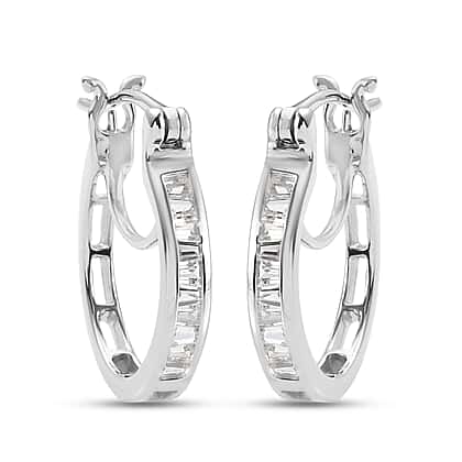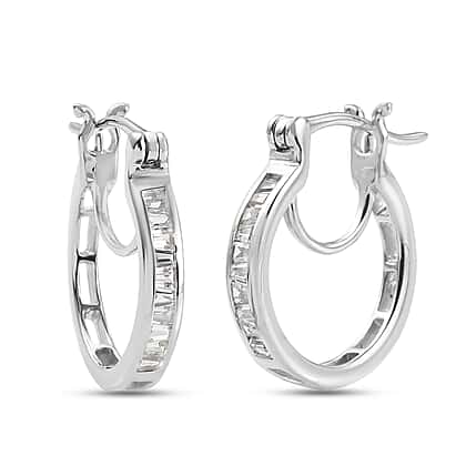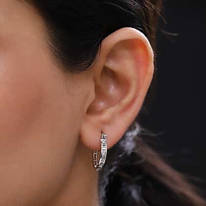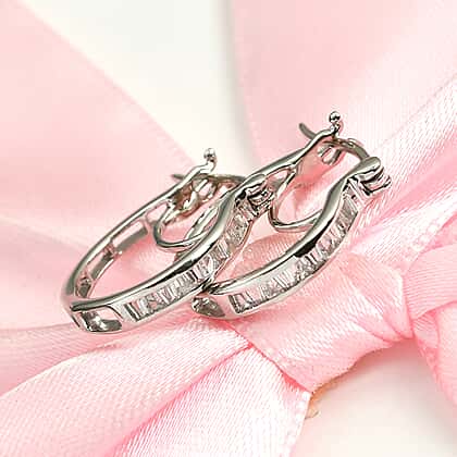 White 0.6 Ct Sapphire Hoop Earrings in Platinum Plated Sterling Silver