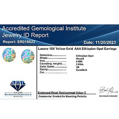 10K Yellow Gold AAA Ethiopian Opal Earring 2.65 ct, Gold Wt. 1.71 Gms 2.650 Ct.