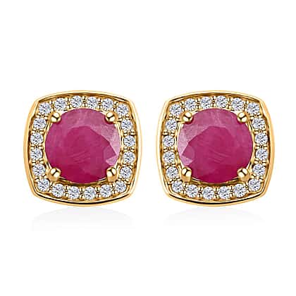 Appraised & Certified LUXORO 10K Yellow Gold AAA Mozambique Ruby, White Diamond I2 Halo Earring 2.15 Ct.