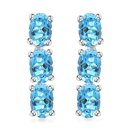 Appraised and Certified 2.4 Ct. Santamaria Aquamarine Trilogy Earrings in 14K White Gold