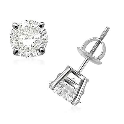 14K White Gold Certified Diamond (F-G/SI3-I1) Stud Earrings (with Screw Back) 1.50 Ct.