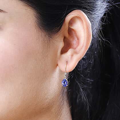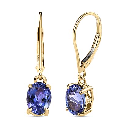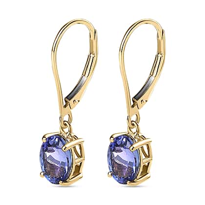 14K Yellow Gold Tanzanite Solitaire Lever Back Drop Earrings 2.71 Ct