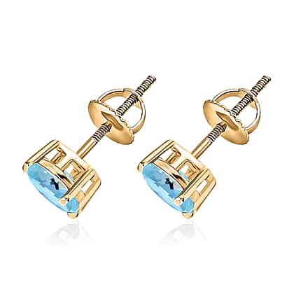 14K Yellow Gold Aquamarine Solitaire Stud Push Back Earring 1.31 Ct.