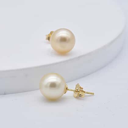 14K Yellow Gold South Sea Golden Pearl Stud Earrings (with Push Back)