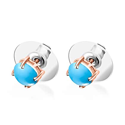 18K Rose Gold Sleeping Beauty Turquoise Solitaire Stud Push Post Earring in Gold Wt. 2.5 grams, 1.70 Ct
