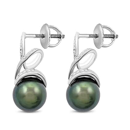 Certified and Appraised Iliana 18K White Gold AAA Tahitian Pearl 9.5-10mm and SI Diamond Earrings 0.21 Ct
