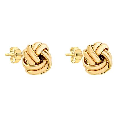 Knot earrings are known for their versatility and are preferred by women who like to keep it simple and classy. This pair is forged in the luxurious finish of yellow gold. It has an impeccable design and quality. The earrings display a double knotting style that lends it a bold look. Match them with an all-gold chain to perfect a minimalist style statement.