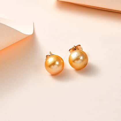 18K Yellow Gold AAA Golden South Sea Pearl Earrings