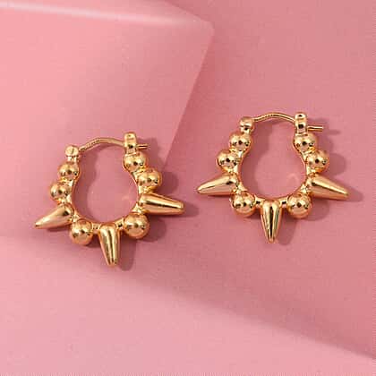 Bold style meets timeless craftsmanship in the 24K yellow gold (99.9% Purity) statement hoop earring with Clasp, a pair designed to stand out in any jewellery collection. Featuring a mix of polished spheres and tapered spikes, these hoops strike the perfect balance between edgy and elegant. The warm glow of pure gold enhances the sculptural detailing, while the secure clasp keeps them comfortable for everyday wear. Hypoallergenic and tarnish-resistant, they’re suitable for sensitive skin and promise long-lasting brilliance. A striking accessory, these hoops embody confidence and individuality, making them a highly valued treasure for modern women who love standout pieces.