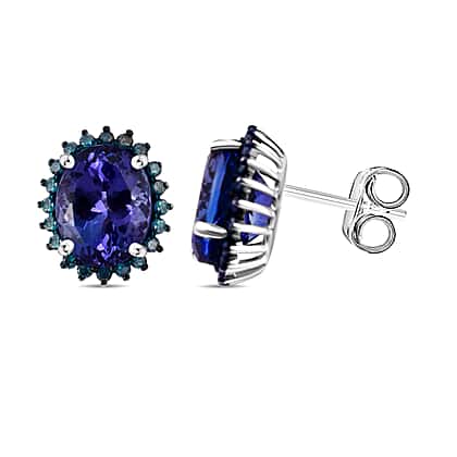 5th Avenue Closeout- 14K White Gold AAA Tanzanite and Blue Diamond Stud Earrings 6.00 Ct