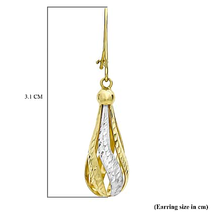 9K 2 Colour Gold 7mm x 34mm Diamond Cut Teardrop Earrings